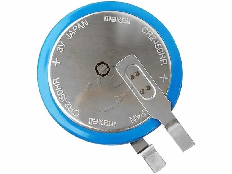 Батарейка MAXELL CR2450HR с выводами под пайку для использования в датчиках давления колёс. Вертикальный монтаж на плату, на «плюсе» — 1 контакт, на «минусе» — 1 контакт. Совместимые модели: CR2450HR CR2450N